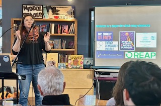 On March 30, Gabby Markel and climate scientist Aurora Roth shared compelling information at an evening gathering they organized at The Writer’s Block in Spenard. The presentation was well attended, brief, informative, and respectful of Chugach Electric leadership and employees while making an appeal to rate payers to vote for Board candidates that support more aggressive action toward renewable energy generation.
